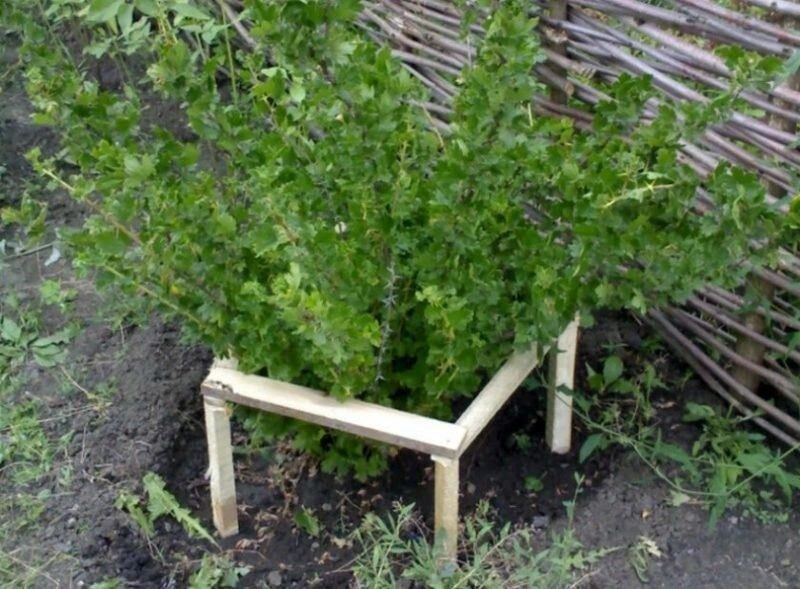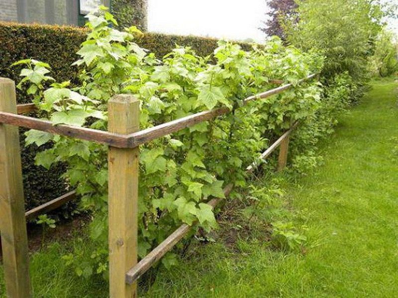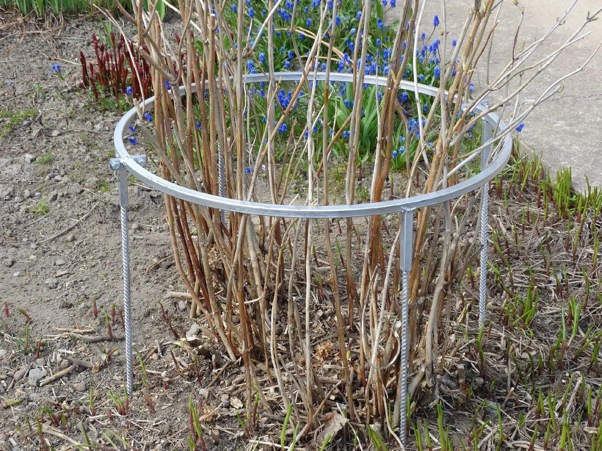 Стовпчики зі шнурком. Стовпчики, обрізані на однакову довжину (30–50 см), вбивають у землю навколо кущів. Між ними протягують міцний шнурок або мотузку, створюючи чіткий контур. Це рішення підходить для кущів смородини чи аґрусу, адже легко монтується і не перешкоджає росту рослин.