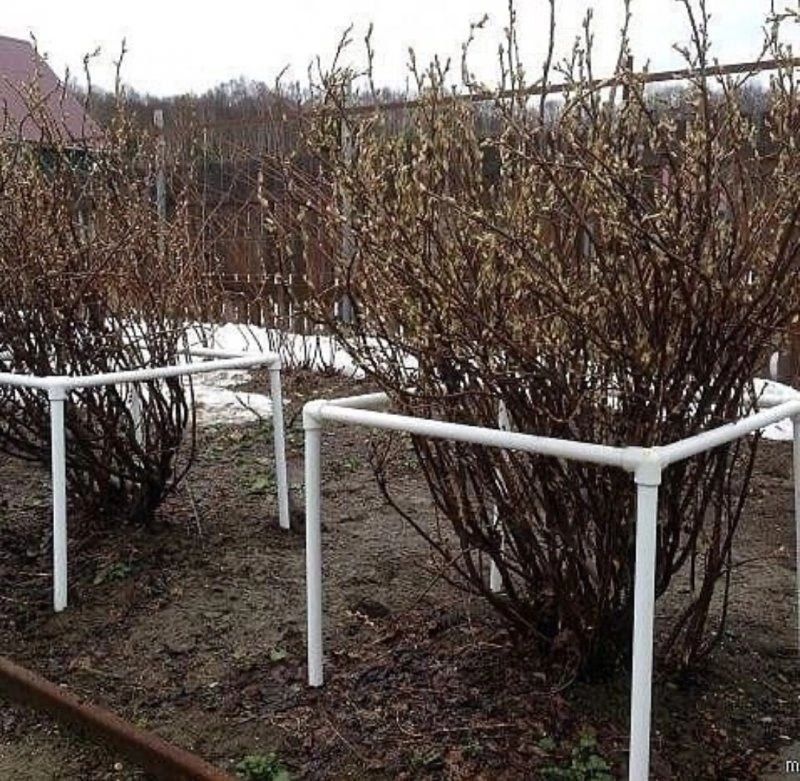 Пластикові чи ПВХ-труби. Пластикові труби чи труби з ПВХ (діаметром 2–5 см) можна розрізати на відрізки однакової довжини та встановити вертикально в землю, утворюючи огорожу. Для естетичного вигляду пофарбуйте їх у зелений чи коричневий колір. Вони підходять для кущів калини чи спіреї, адже стійкі до вологи й не гниють.