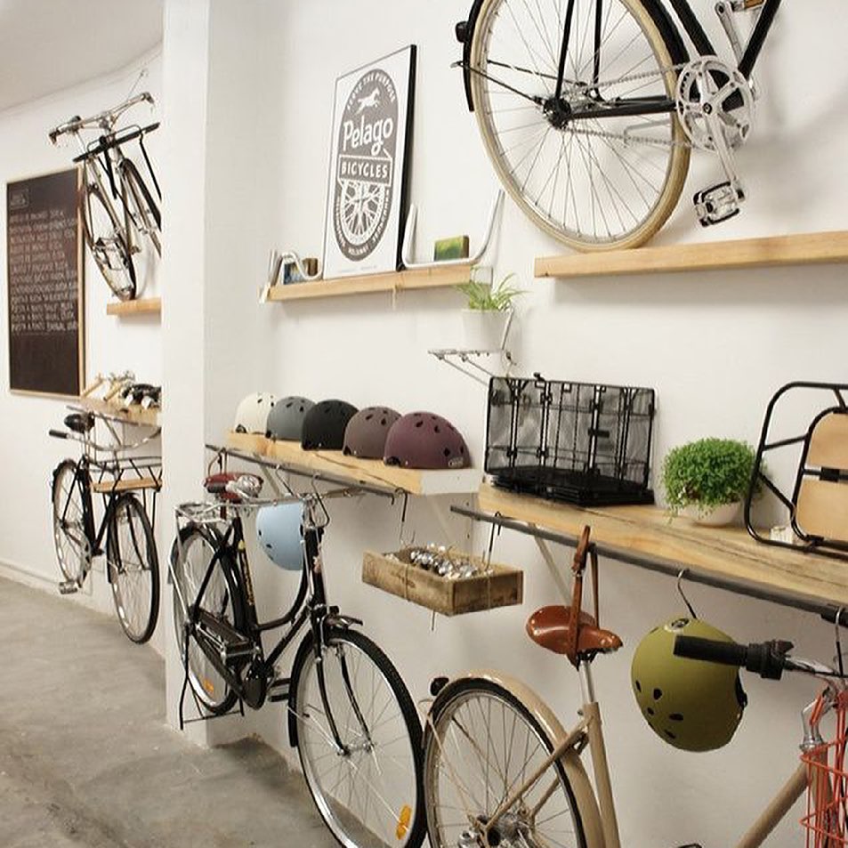 5) Полиці для велосипеда. Якщо у вас є достатньо вільних стін, ви можете використовувати полиці, на які можна поставити велосипед колесами. Цей спосіб зберігання особливо підходить для маленьких квартир.