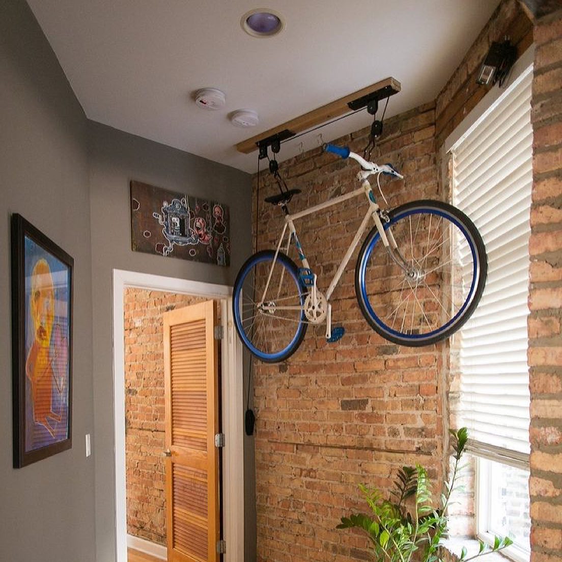 6) Підвіси для велосипеда. Якщо ви хочете зберігати велосипед поза межами квартири, то можете встановити спеціальний підвіс на балконі чи у вестибюлі будинку.
