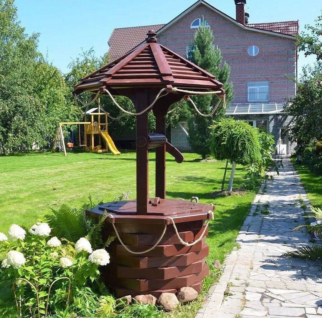 - Функціональність. Якщо хочете, щоби криниця була не лише декором, подумайте про підведення води чи встановлення насоса.