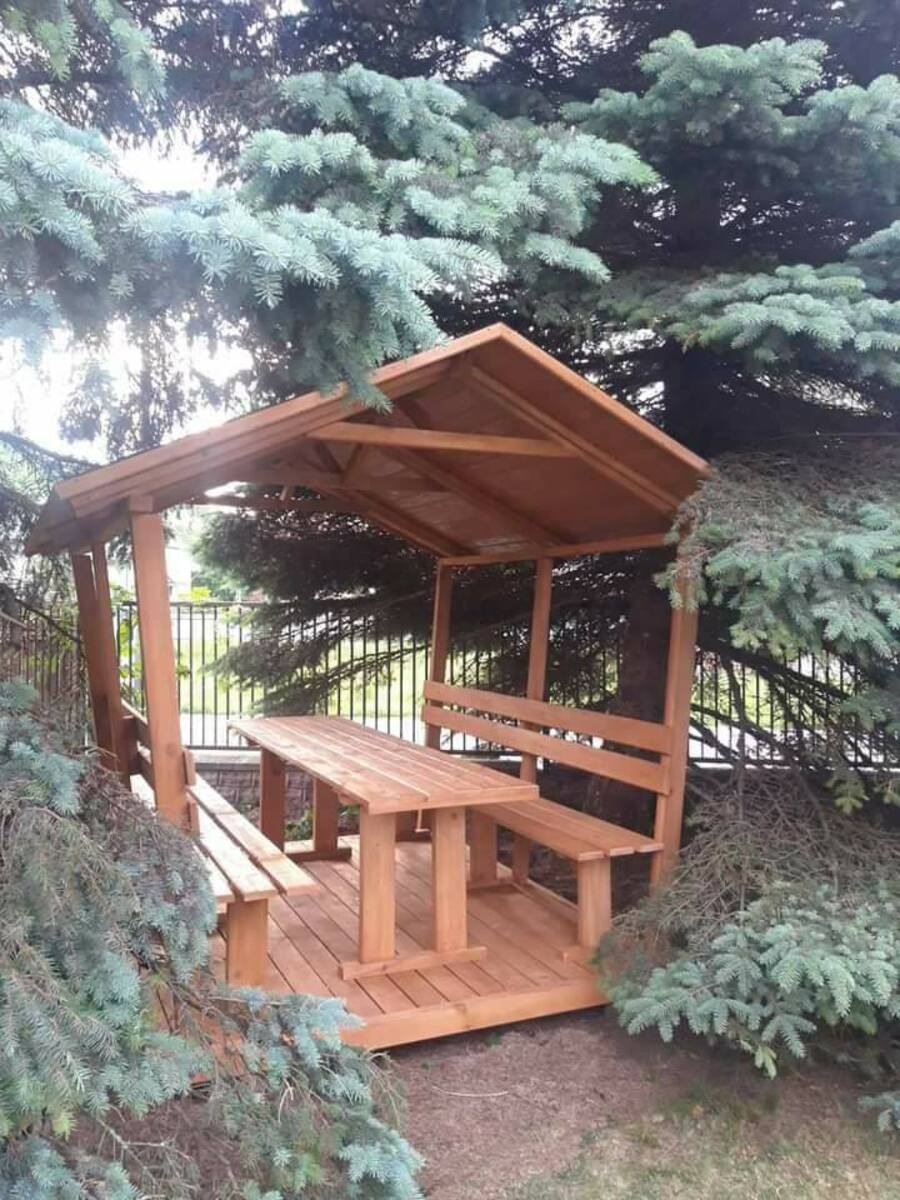 ✔ Любителям натуральних матеріалів. Якщо вам подобаються екологічні, природні рішення, дерев’яна альтанка стане ідеальним вибором. Вона впишеться в будь-яку зелену зону, буде чудово виглядати поруч із садом, ставком або квітковими клумбами.