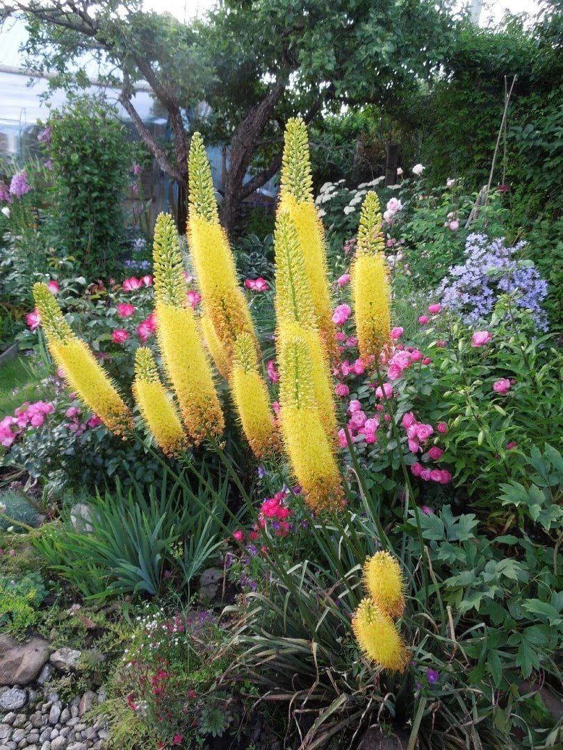 Фото: Телеграм-канал «Садівник»Як великі смолоскипи, еремуруси піднімаються над іншими рослинами у вашому саду, привертаючи увагу своїми величними суцвіттями. Ці рослини, які виростають до вражаючої висоти — від 75 до 100 см — надають незабутнього вигляду будь-якому саду.