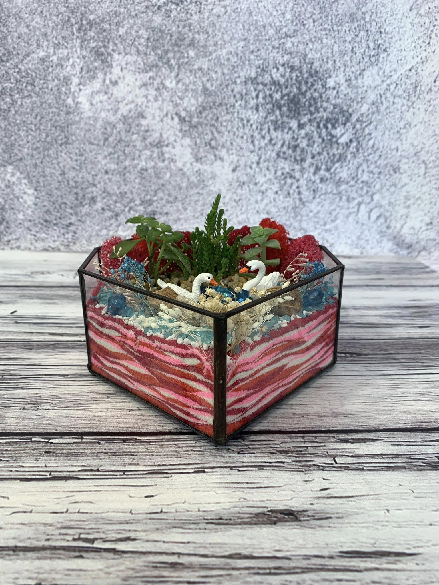 Універсальність. Флораріум підходить для будь-якого випадку: День народження, Новий рік, весілля чи просто як знак уваги. Його можна подарувати колезі, другу, мамі чи навіть дитині — адже діти обожнюють спостерігати за маленькими екосистемами.