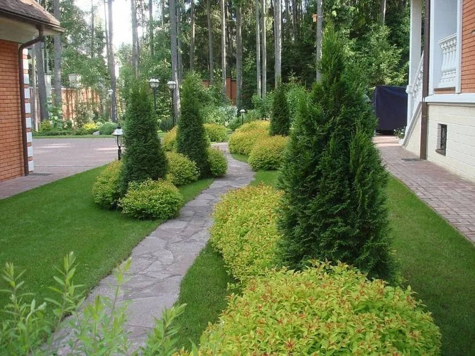 Алеї вздовж доріжок. Композиції з низькорослих ялівців, сосен або тисів уздовж садових доріжок створюють вишуканий вигляд, додаючи затишку та структури всій території.