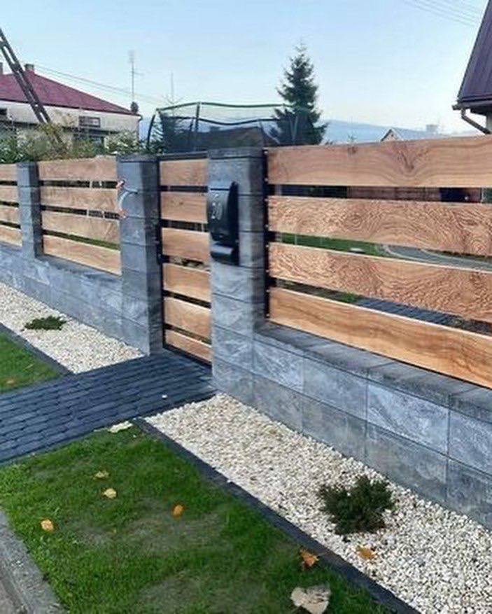 Бетон і камінь. Паркан із бетонних або кам'яних блоків може бути високим і масивним, надаючи вашому саду відчуття приватності та безпеки. Він може бути оздоблений або фарбований в різних кольорах для створення бажаного стилю.