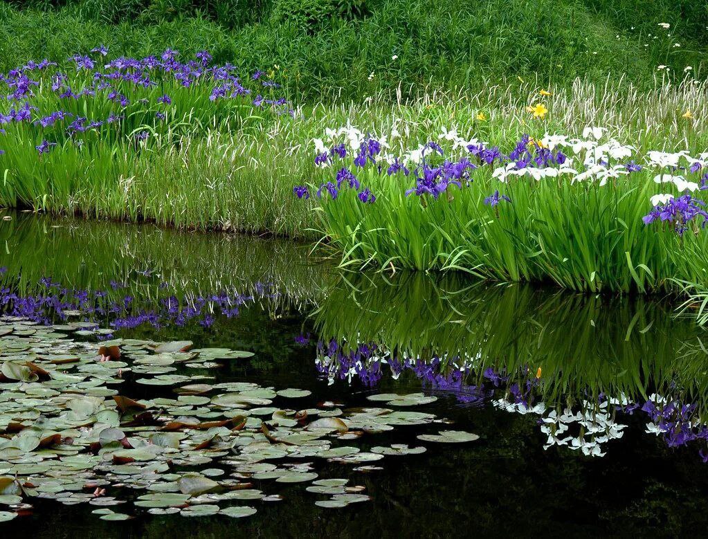 Фото: Телеграм-канал «Садівник»Деякі види ірисів, зокрема півники болотяні або іриси сибірські, дуже добре ростуть біля водоймищ. Телеграм-канал «Садівник» пропонує прикрасити ними один із берегів, аби тішитися як самими квітами, так і їх відображенням у воді.