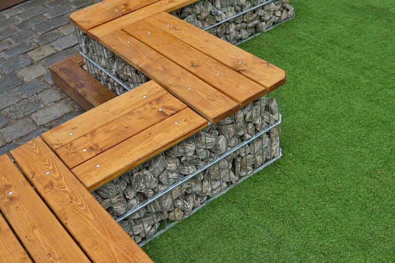 Садові меблі. Завдяки своїй міцності габіони можуть слугувати основою для лавок, столів або навіть барних стійок у саду. Просто встановіть зверху дерев'яну стільницю чи сидіння.