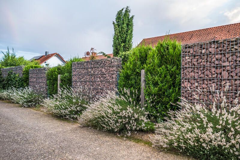Огорожі та паркани. Це найпопулярніший спосіб використання габіонів. Вони виглядають сучасно й надійно захищають ділянку. Можете комбінувати габіони з дерев'яними елементами чи металевими панелями.