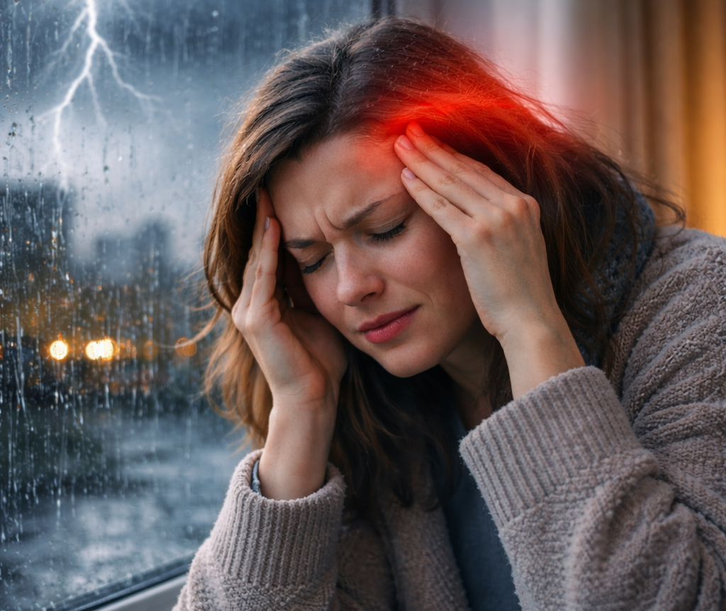 Погода є одним із найпоширеніших тригерів для виникнення мігрені. Різкі зміни атмосферного тиску можуть провокувати напади. Спека, холод і висока вологість також часто стають пусковим механізмом. Яскраве сонячне світло може діяти як подразник, тому людям із мігренню рекомендують носити сонцезахисні окуляри.