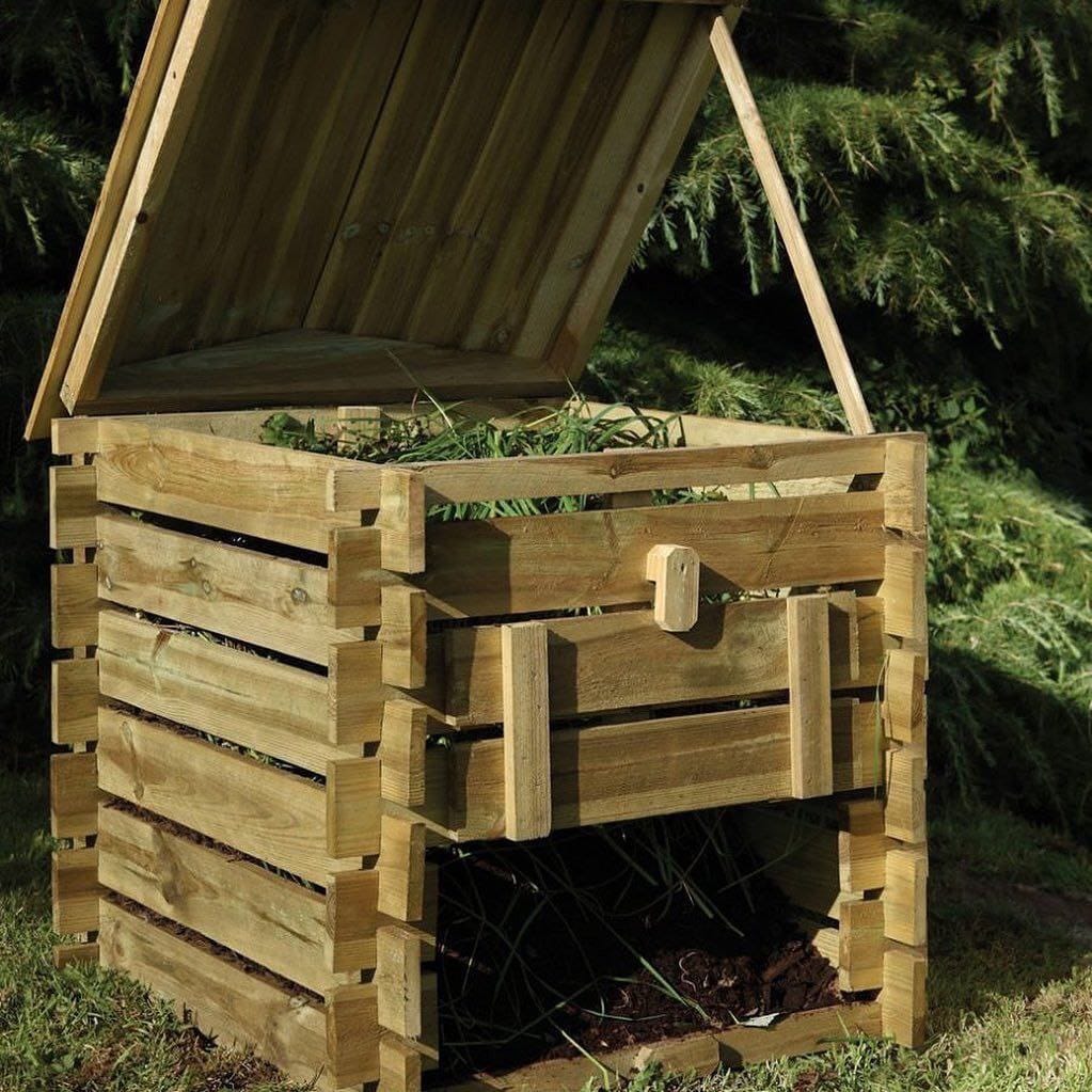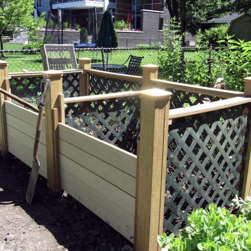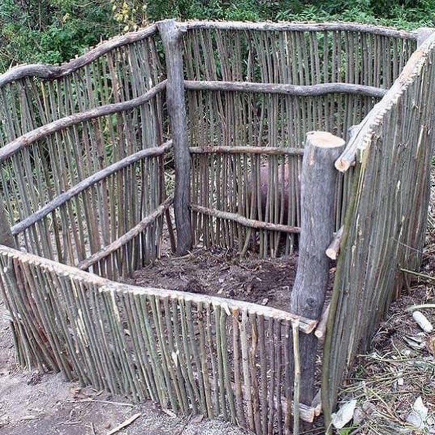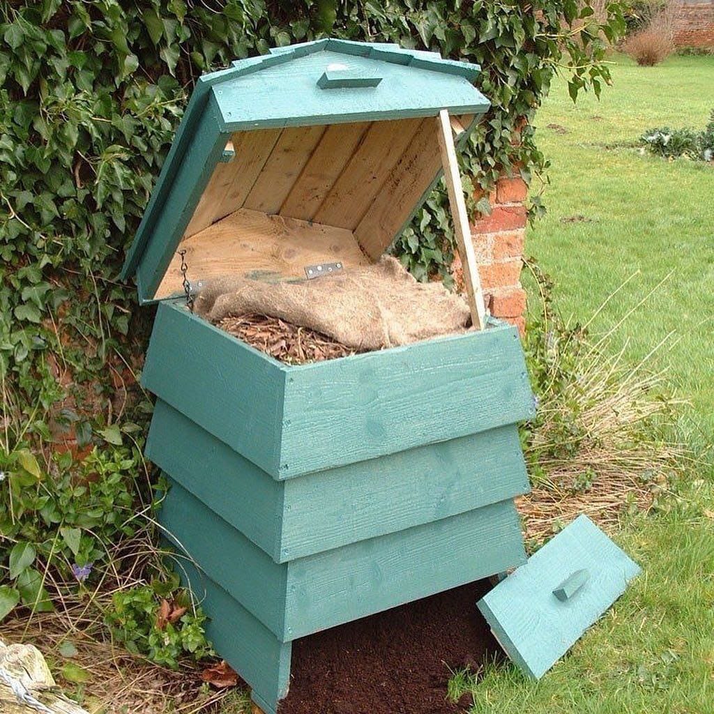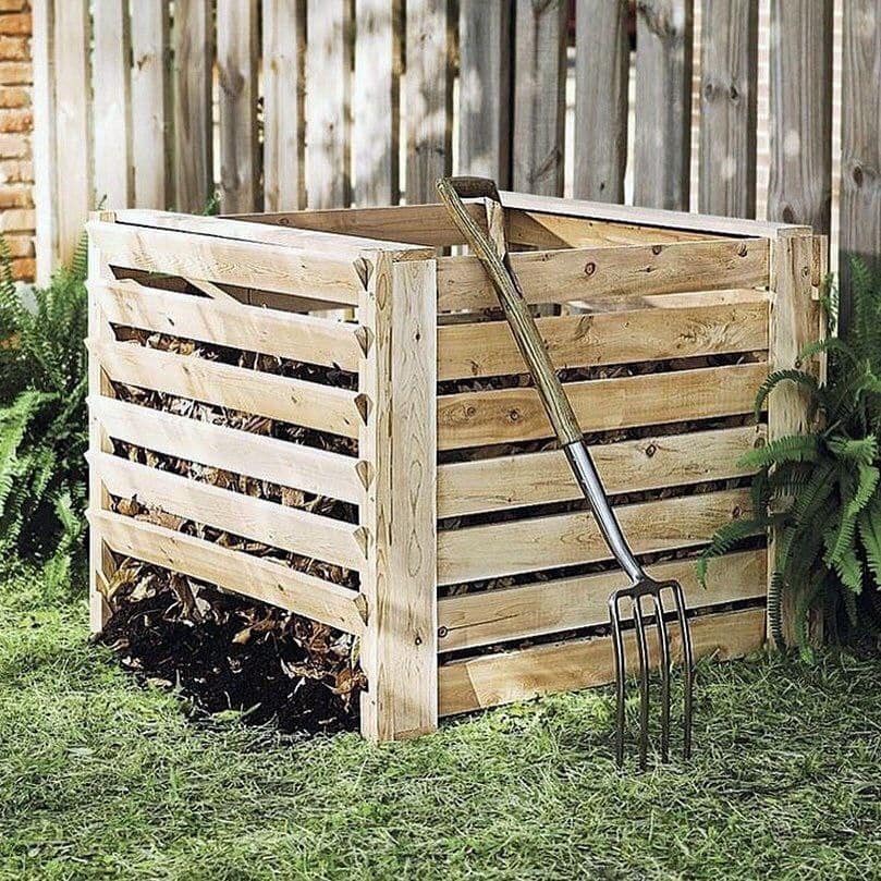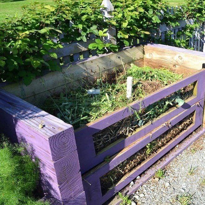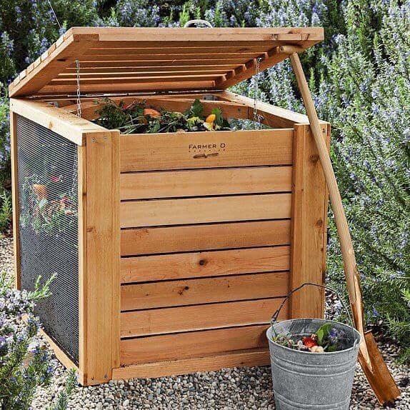 Функціональність. Нижні відсіки для компосту, верхні — для декоративних рослин у горщиках, які живляться готовим компостом. Додайте сітку на задній стінці для вентиляції.