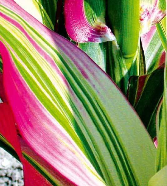 Стебла у цього сорту колінчасті, соковиті. Листя стрічкоподібне із зеленими, жовтими, рожевими смугами.