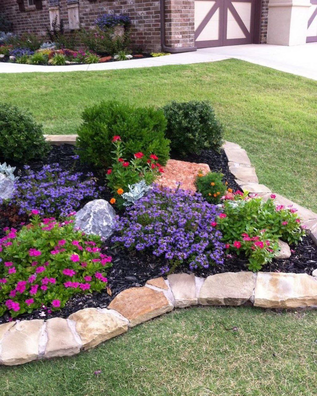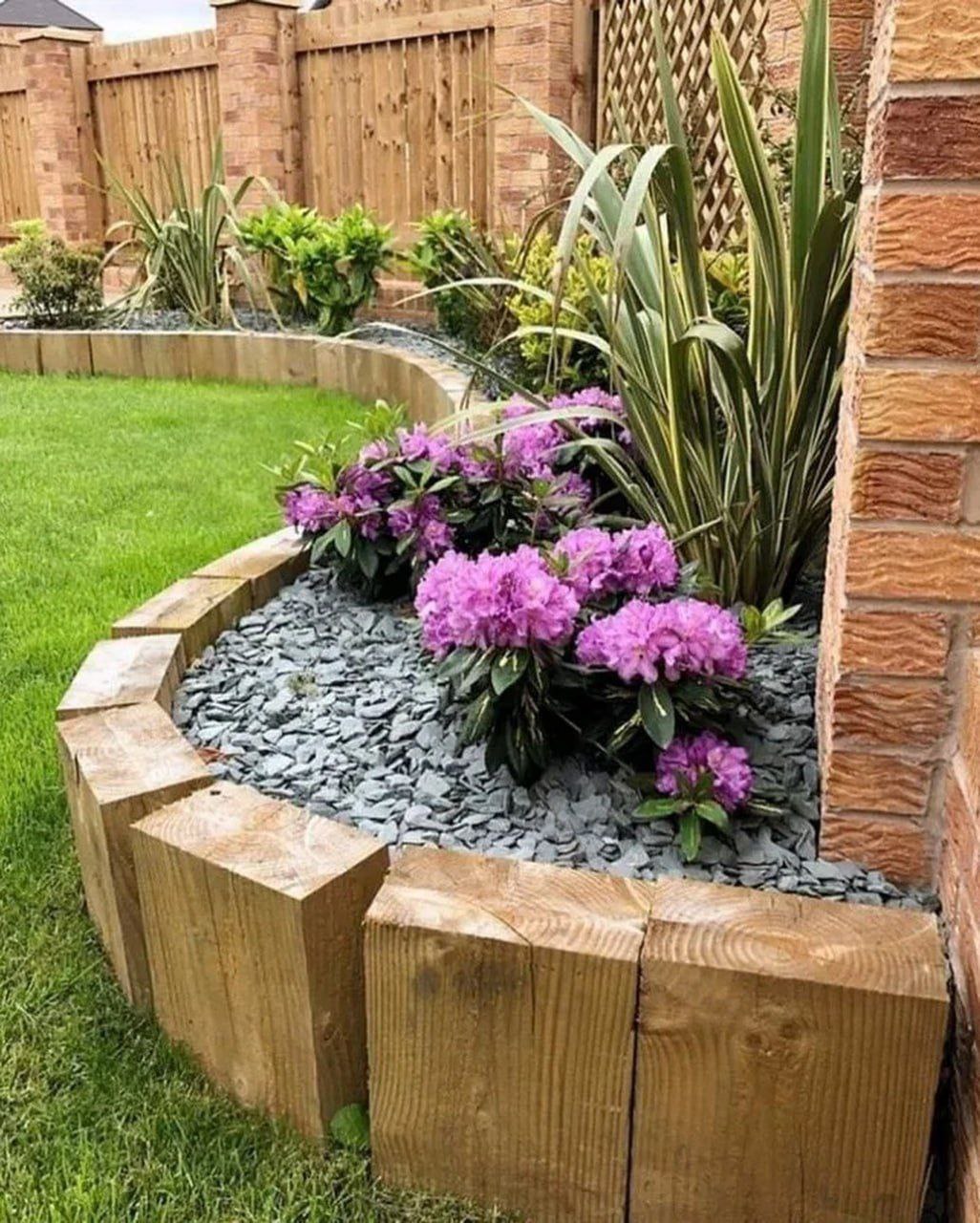 Камінь і валунки. Використання природного каменю чи декоративних валунків навколо клумби створює натуральний і естетичний вигляд. Ви можете влаштувати межу, закопавши камінь частково в ґрунт або вирізавши глибшу канаву.