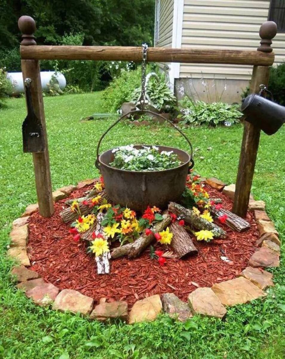 Ідея: розмістіть старе дерев'яне колесо від воза горизонтально та висадіть у проміжках між спицями різнокольорові квіти.