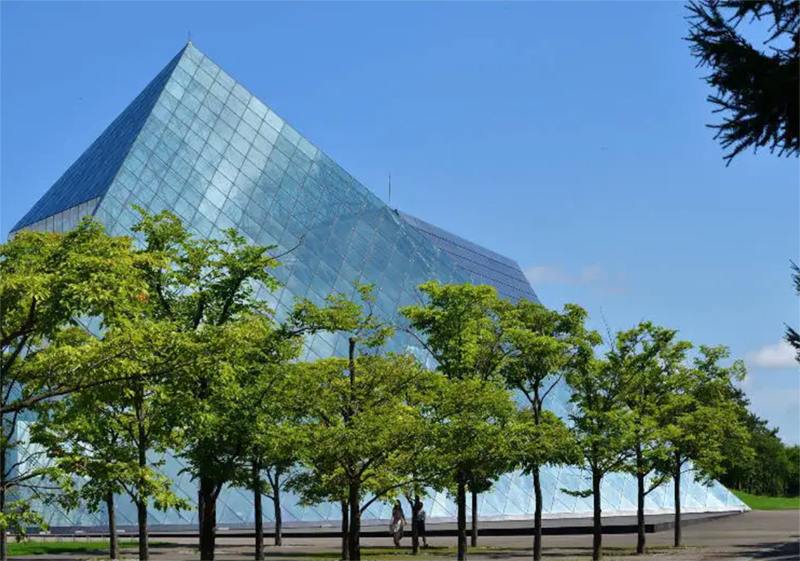 Центральним елементом парку стала скляна піраміда Хідамарі («Сонячне світло») — легка й світла конструкція заввишки 32 м, що виконує не лише естетичну, а й функціональну роль. Усередині розташовано виставкові зали, оглядові майданчики та дитячі простори. Прозорі стіни піраміди пропускають світло й підкреслюють природну мінливість дня — так, як це любив показувати Ногучі у своїх роботах.