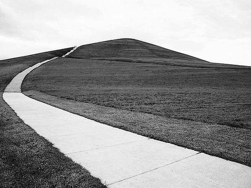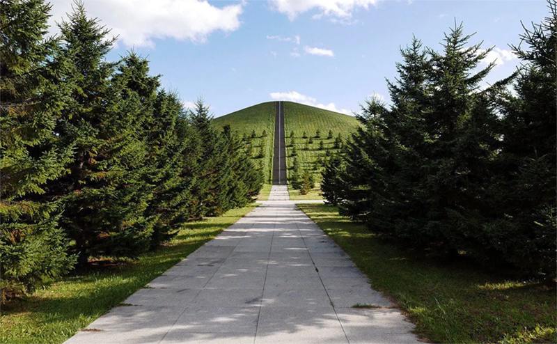 Поряд із пірамідою розташовані геометричні земляні насипи — своєрідні штучні кургани, що стали новими акцентами ландшафту. Їхні форми — кола, трикутники, хвилі — покликані інтегруватися в природу, а не протиставлятися їй.