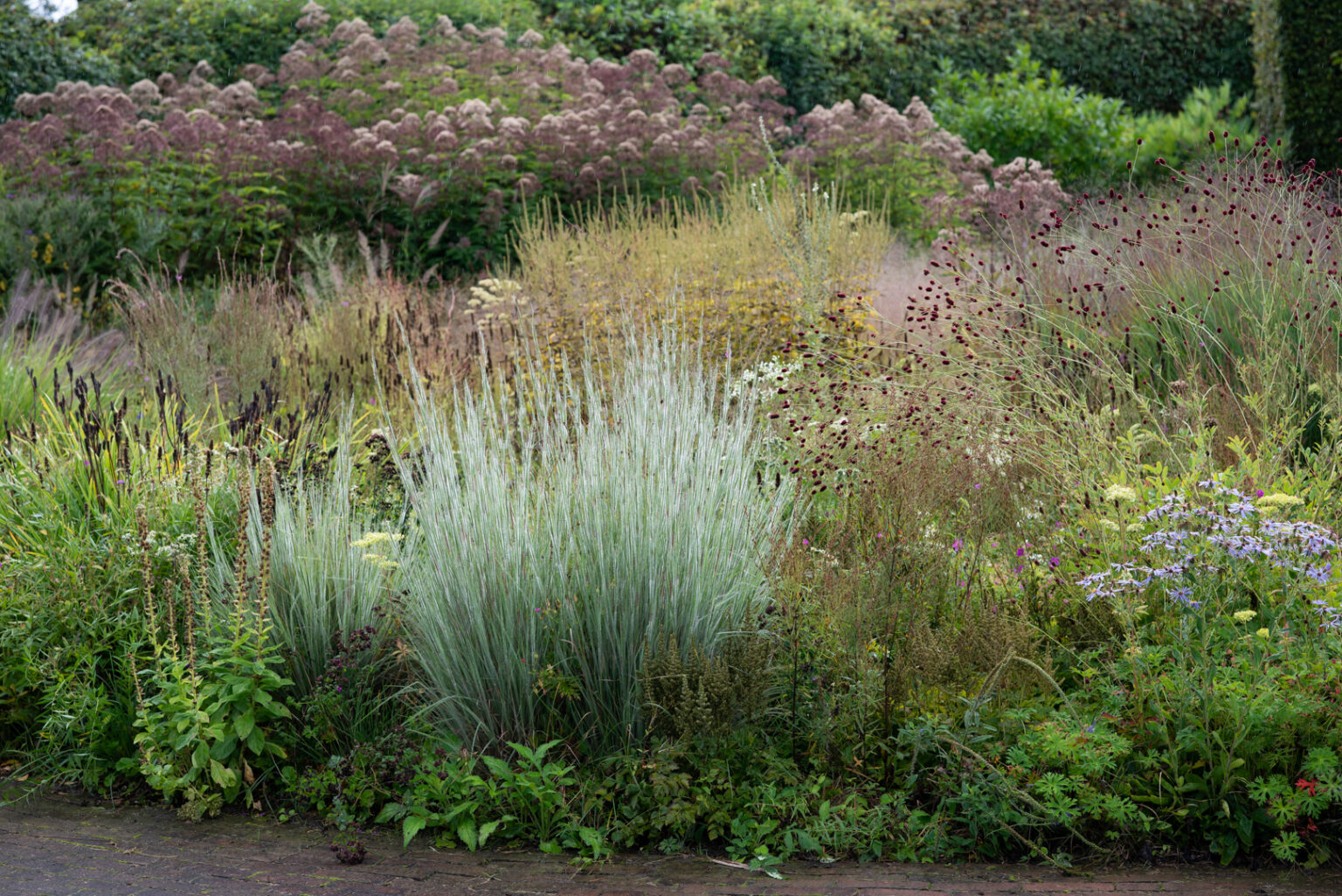 Декоративні злаки. Міскантус, куничник, пеннісетум і молінія створюють «хмари» з тонких стебел, додаючи руху та легкості.