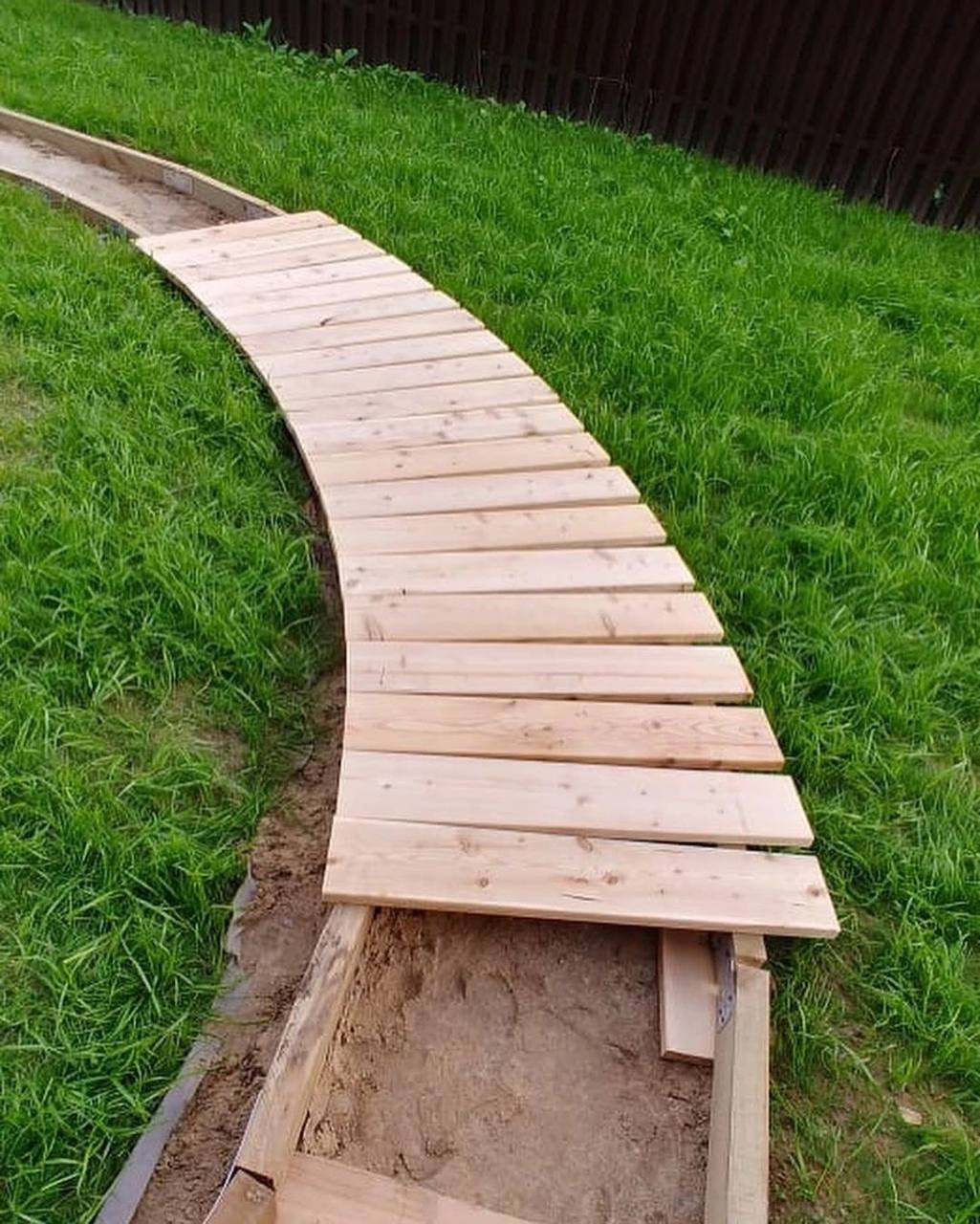 Легкість обслуговування. Дерев'яні доріжки легко доглядати. Достатньо регулярно обробляти їх захисними засобами для дерева — і вони прослужать вам довгий час.