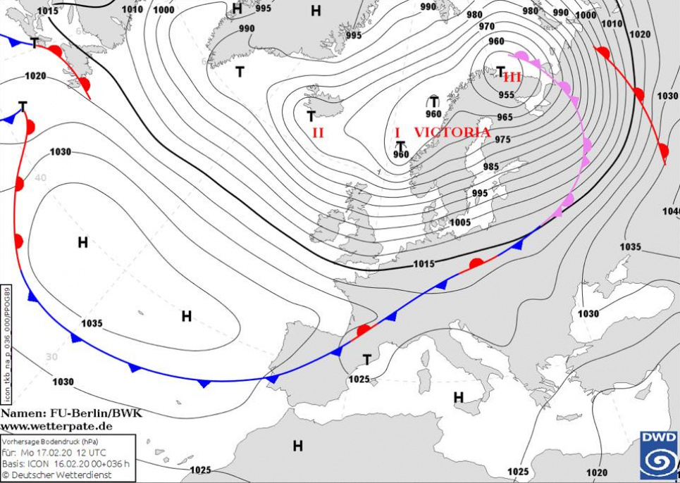 Деніс – це масивний фронт негоди, протяжністю понад 3 тисячі миль від сходу Канади до Скандинавії. В Ісландії зафіксували падіння тиску до