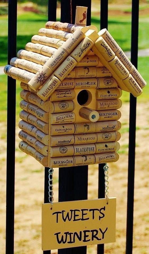 Креативні підвіски. Сполучіть винні корки різних розмірів і форм, аби створити креативні підвіски для дачного саду. Вони можуть мати вигляд пташок, квітів, сонця чи будь-яких інших об'єктів, які ви бажаєте.