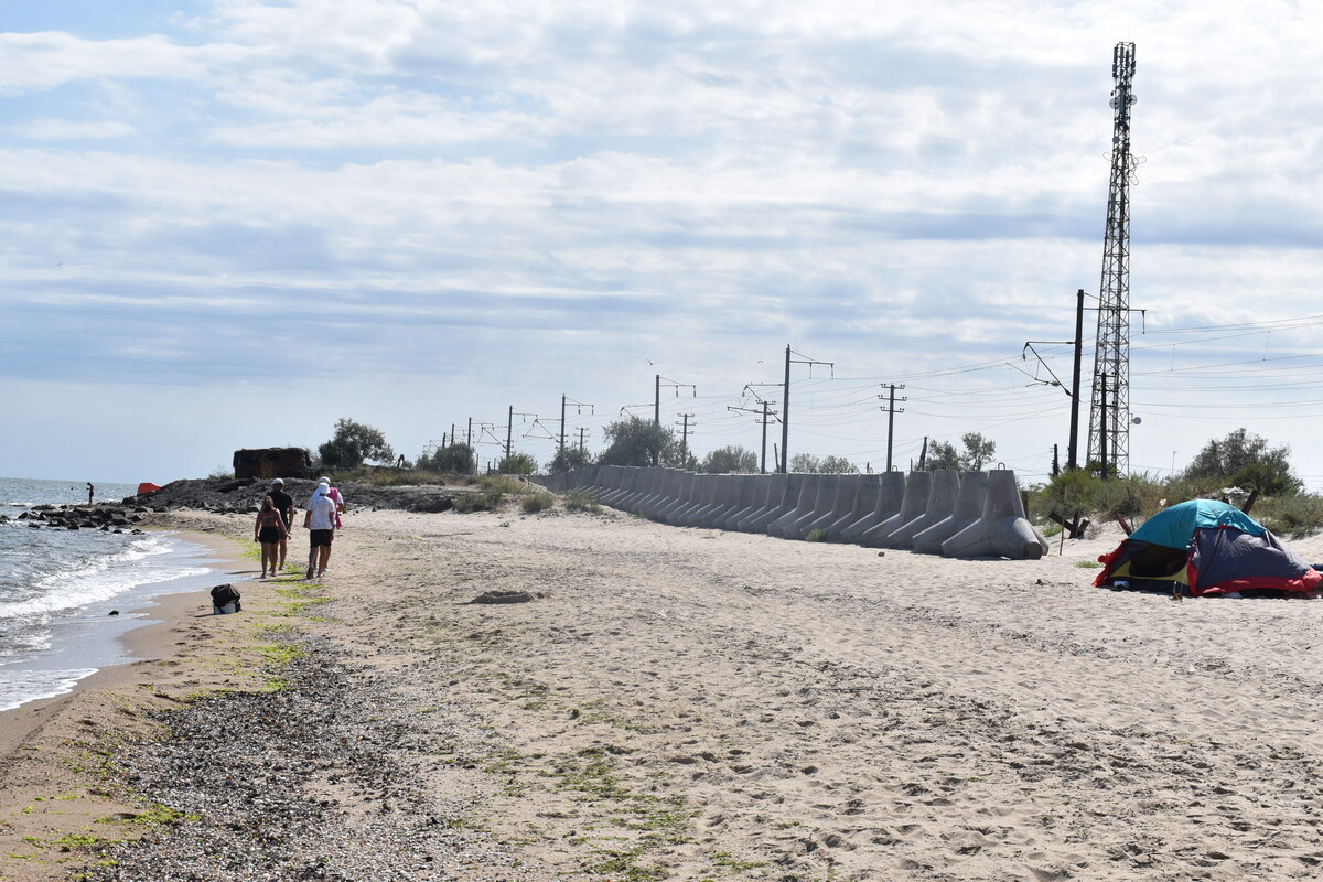 «Людей зараз уже багато, ми відкрилися у червні, але лише після 20 липня народ пішов. У червні я мав 15 шезлонгів, а тепер — 200. І на даний момент лише три вільні. Минулого року нікого не було. 2022-го — те ж саме. Я тут щоліта працюю. Як іти пляжем на захід, то він до вузького місця доходить, там блокпост. Але там небезпечно, 2022 року обстріл був майже щодня. Об'їзд лише через кордон», — розповідає місцевий хлопець Дмитро.