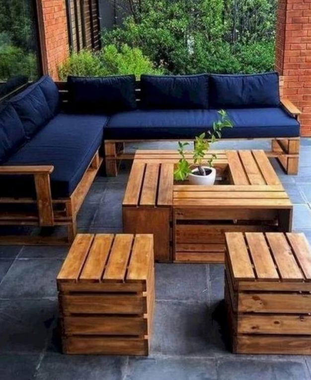 Для завершеного вигляду та комфорту додайте м'які, бажано вологостійкі подушки та матраци. Задекоруйте меблі гірляндами з ліхтариків, свічками, пледами чи невеликими горщиками з травами. Колір меблів можна залишити натуральним або пофарбувати в яскраві чи пастельні тони.