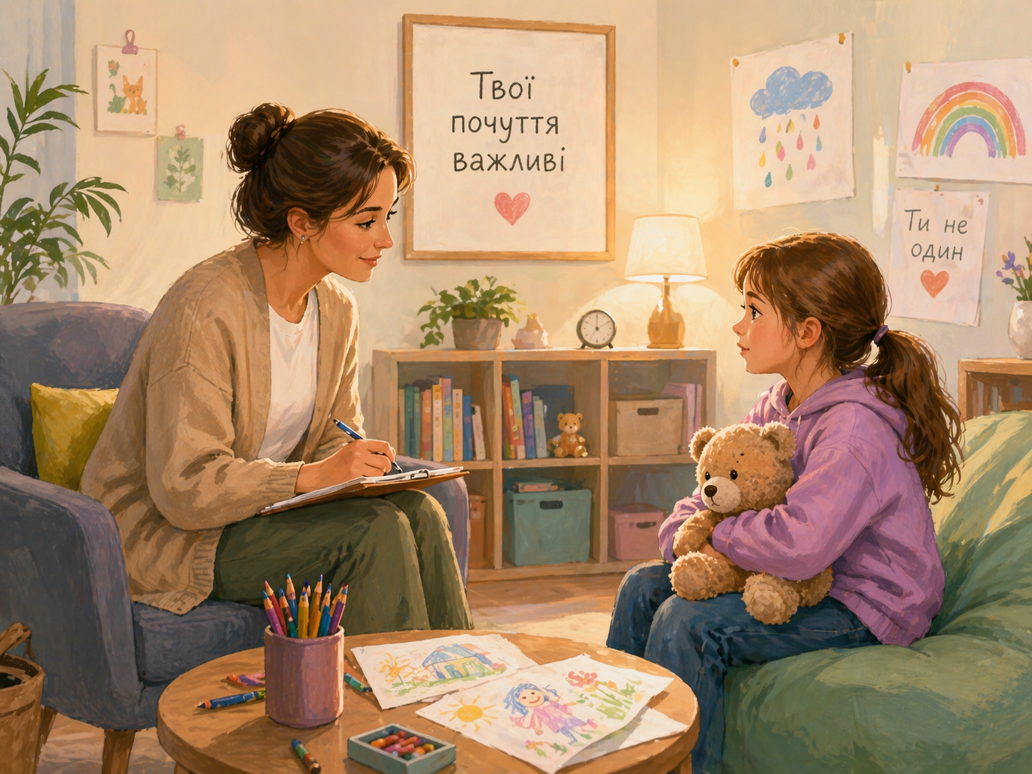 Психологи працюють із дітьми, які стали свідками травматичних подій, допомагаючи стабілізувати емоційний стан і запобігти довготривалим наслідкам психотравми.