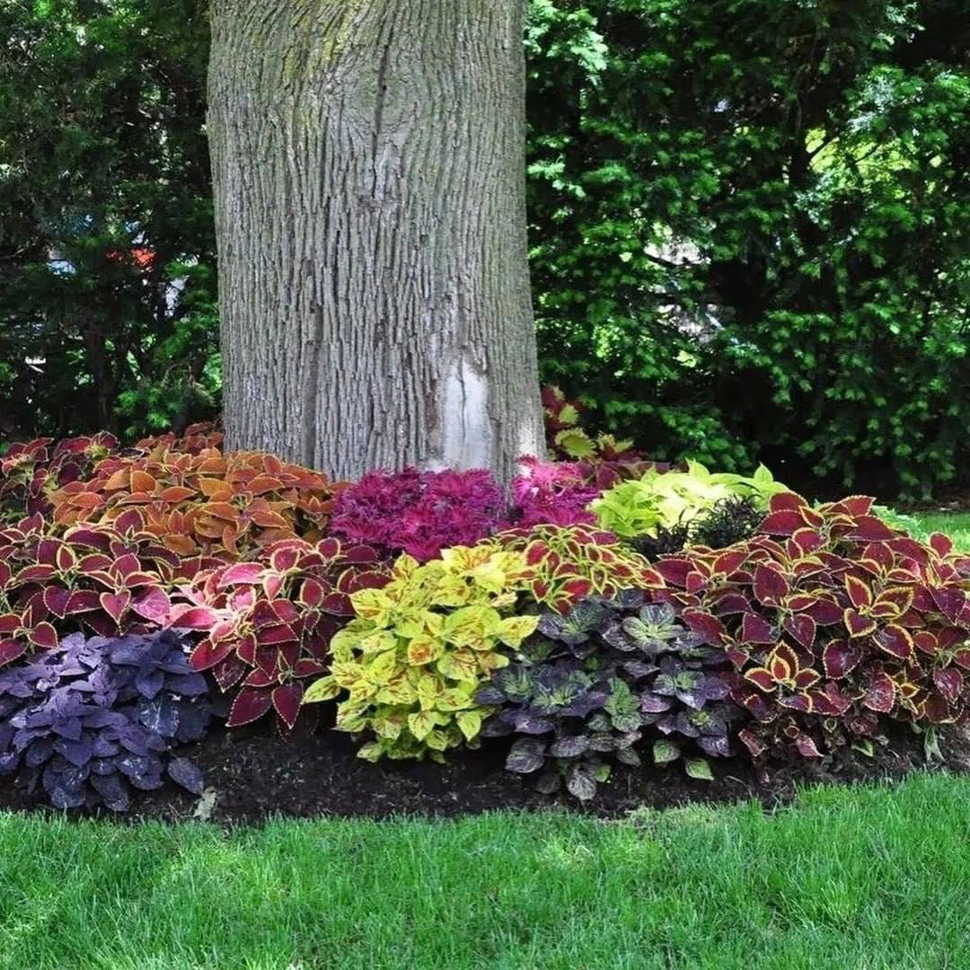 Для такого квітника необхідно підібрати рослини, які не тільки матимуть ефектний вигляд під деревом, а й зможуть добре прижитися. Краще вибирати тіньовитривалі низькорослі рослини з неглибокою кореневою системою.