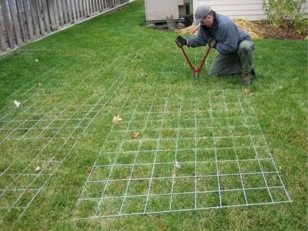 - Вбийте в ґрунт металеву арматуру по краях розмітки на однаковій відстані (наприклад, кожні 50–70 см). Це слугуватиме основою для труб.