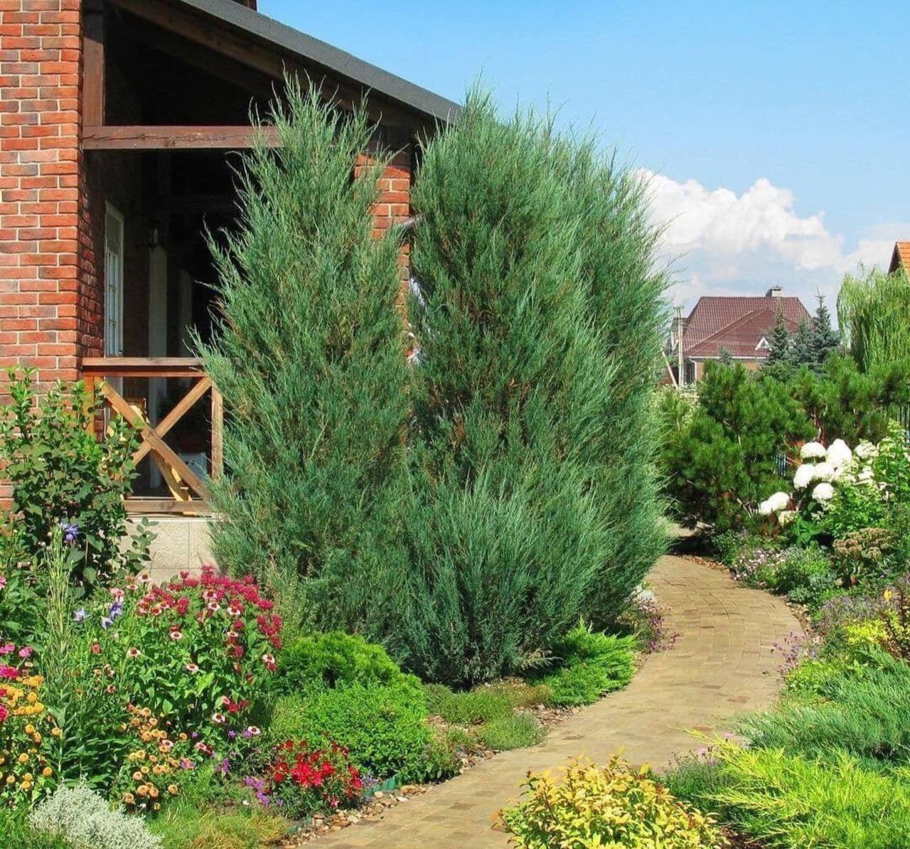 4) Солітери. Великі, вертикальні сорти ялівцю, такі як Juniperus communis або Juniperus virginiana, можуть стати яскравими солітерами (окремо стоячими рослинами) на газоні чи в квітнику. Вони привертають увагу своєю стрункістю та декоративністю.