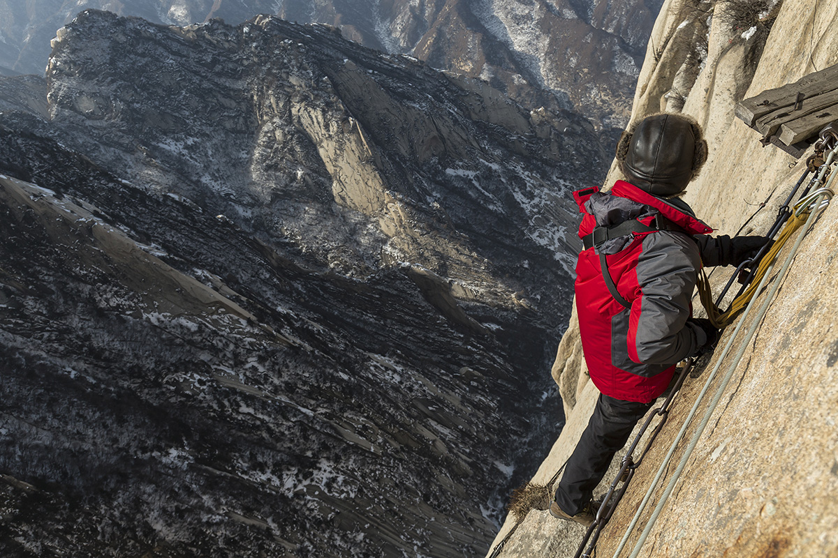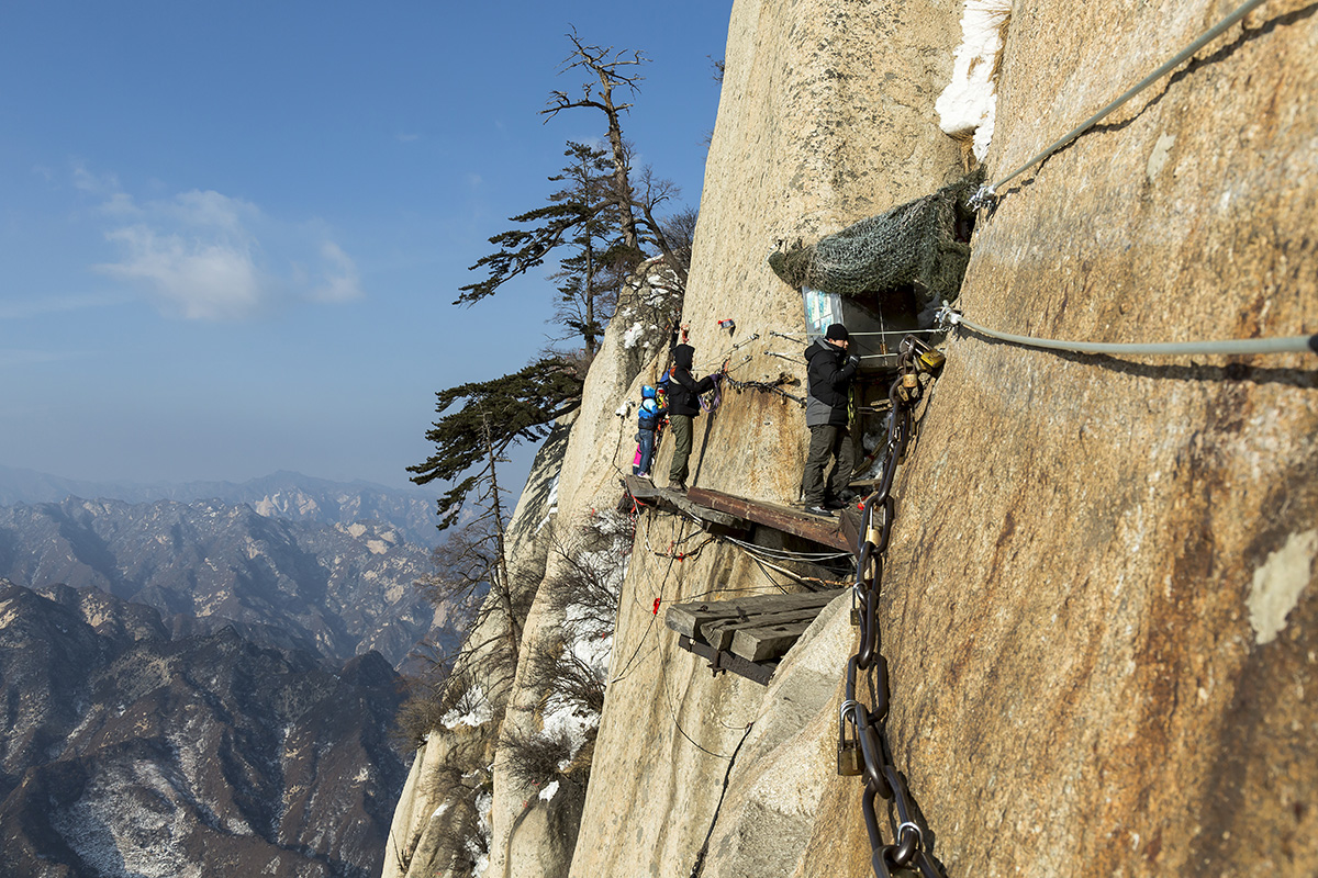 Туристы идут по опасной тропе на горе Хуашань, северо-западная провинция Шэньси, Китай, 2017 год. Фото: shutterstock.comПрогулка по туристической тропе на горе Хуашань в Китае придает совершенно новый смысл фразе "идти по краю пропасти". Эта небольшая тропа называется самой опасной в мире. Она представляет собой узкий деревянный настил длиной 130 м, прикрепленный к отвесной скале на высоте около 2160 м. Проложенный более 700 лет назад даосским священником Хэ Чжичжэнем, этот маршрут был создан для доступа к отдаленным местам медитации на горе. "Зеркало" предлагает посмотреть (если не боитесь высоты), как выглядит проход по самой опасной тропе мира.