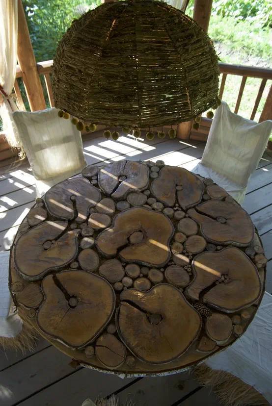 Стільці та столики зі спилів. Відновлення спилів дерева в якості стільців або столиків — чудовий спосіб створити натуральну й екологічну меблі для вашого саду. Просто обріжте спил дерева на потрібну висоту та додайте кілька ніжок для стабільності.