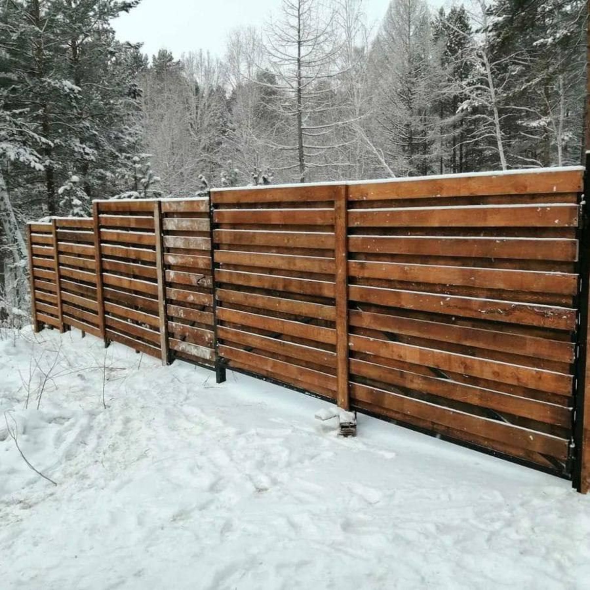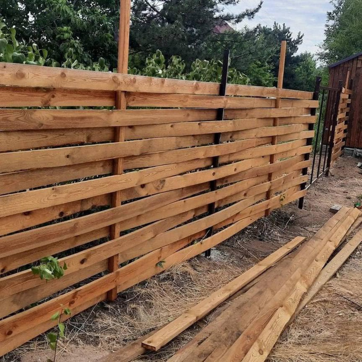 - Материалы Чаще всего используют доски из дерева, такого как сосна, ель или лиственница. Важно, чтобы древесина была обработана специальными средствами для защиты от влаги, грибка и вредителей. Это поможет продлить срок службы забора и сохранить его внешний вид.