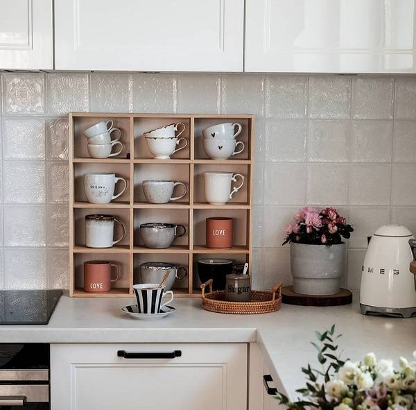Можно так организовать хранение чашек, чтобы они были не только доступны, но стали стильным акцентом вашей кухни.