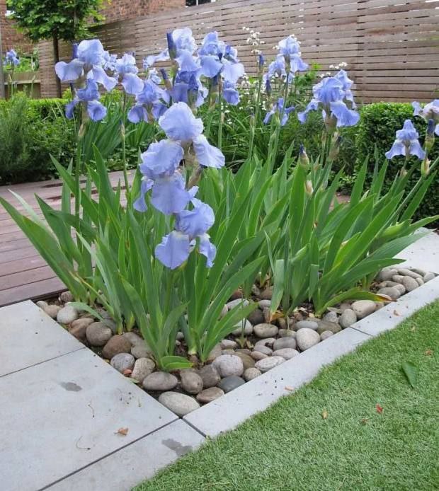 Великі однорідні посадки. Іриси можуть створювати вражаючі масиви квітів у клумбах, рабатках або на газоні. Великі групи ірисів можуть перетворити будь-яку зону на справжній цвітучий рай, особливо під час їхнього розквіту навесні та на початку літа.