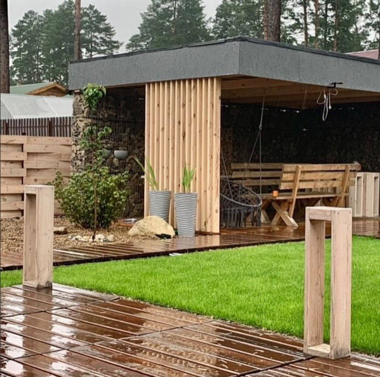 Используйте вертикальные светильники, чтобы подчеркнуть зоны отдыха, например, беседку или место для барбекю. Разместите их по периметру, создавая эффект «световых рамок». Тёплый белый свет (около 3000K) добавит уюта, а модели на солнечных батареях сделают дизайн энергоэффективным — они заряжаются днём и включаются автоматически ночью.