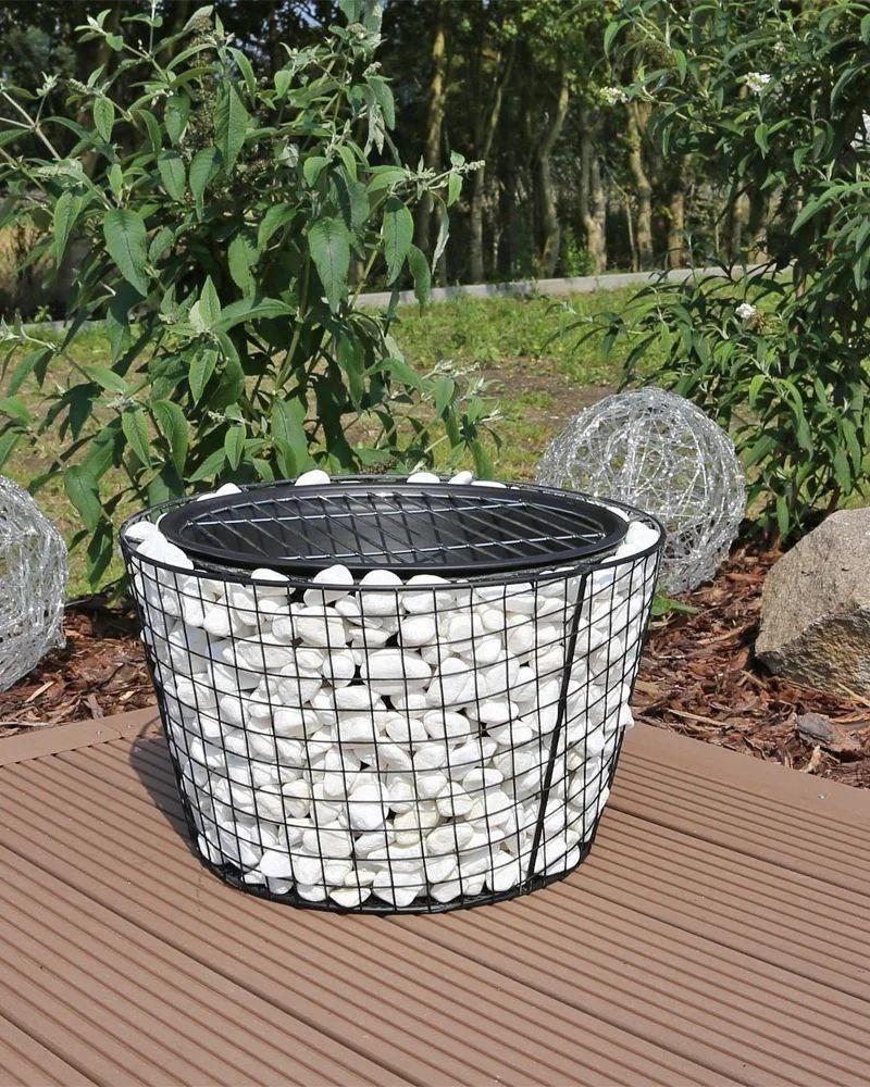- Внешние камины и мангалы. Создайте прочный и безопасный стационарный мангал или уличный камин на габионной основе.