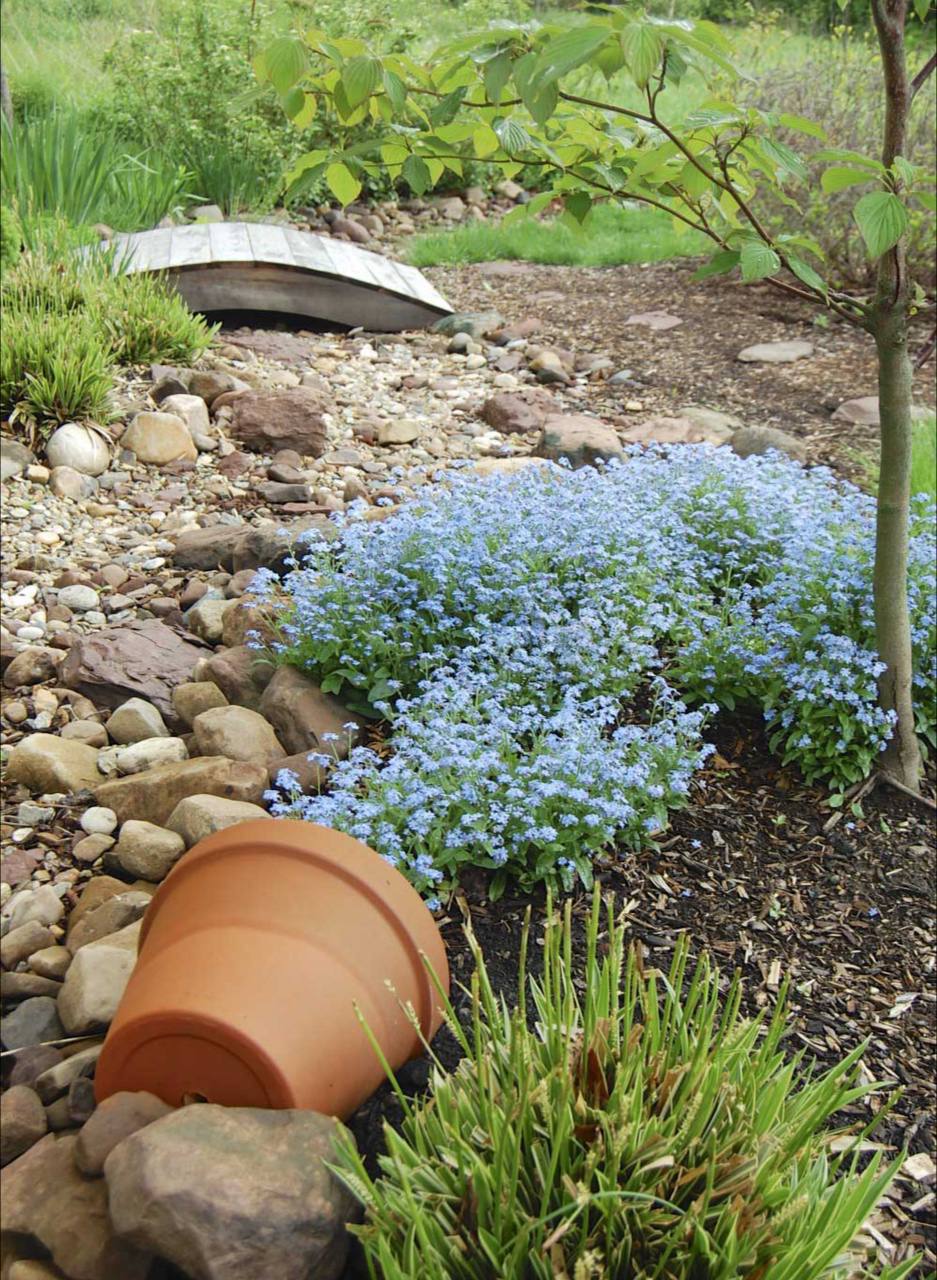 Что делает такой цветник особенным? Его основной чертой является имитация ручья или реки, проходящей через ваш сад.