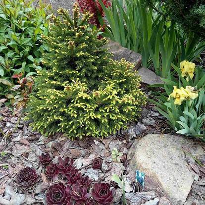 Один зі способів забезпечити довготривалу красу клумби — це комбінування хвойних рослин із квітами.