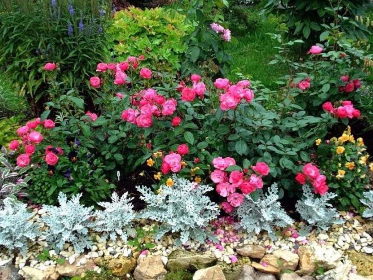 Полиантовые розы тоже хорошо смотрятся на ухоженных садовых клумбах. Такие растения являются непрерывно цветущими, их часто располагают вдоль дорожек и тропинок, а также под окнами дома. Также полиантовые розы будут неплохо смотреться на входе на участок.