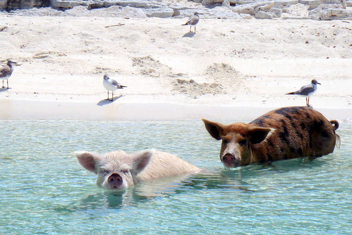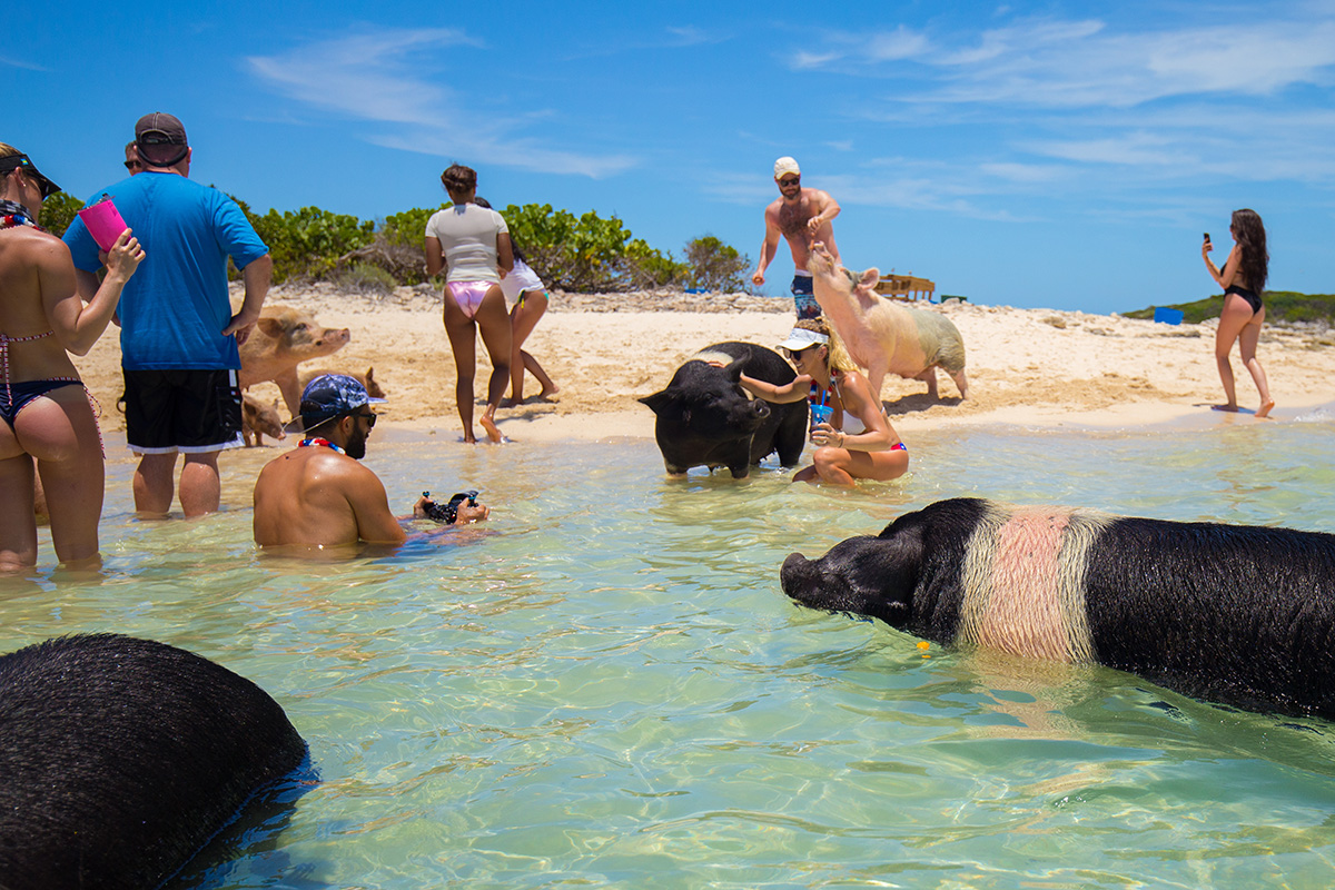 - Один из пляжей Багам облюбовали свиньи – они хорошо плавают, и к ним приезжают туристы со всего мира (ФОТО)