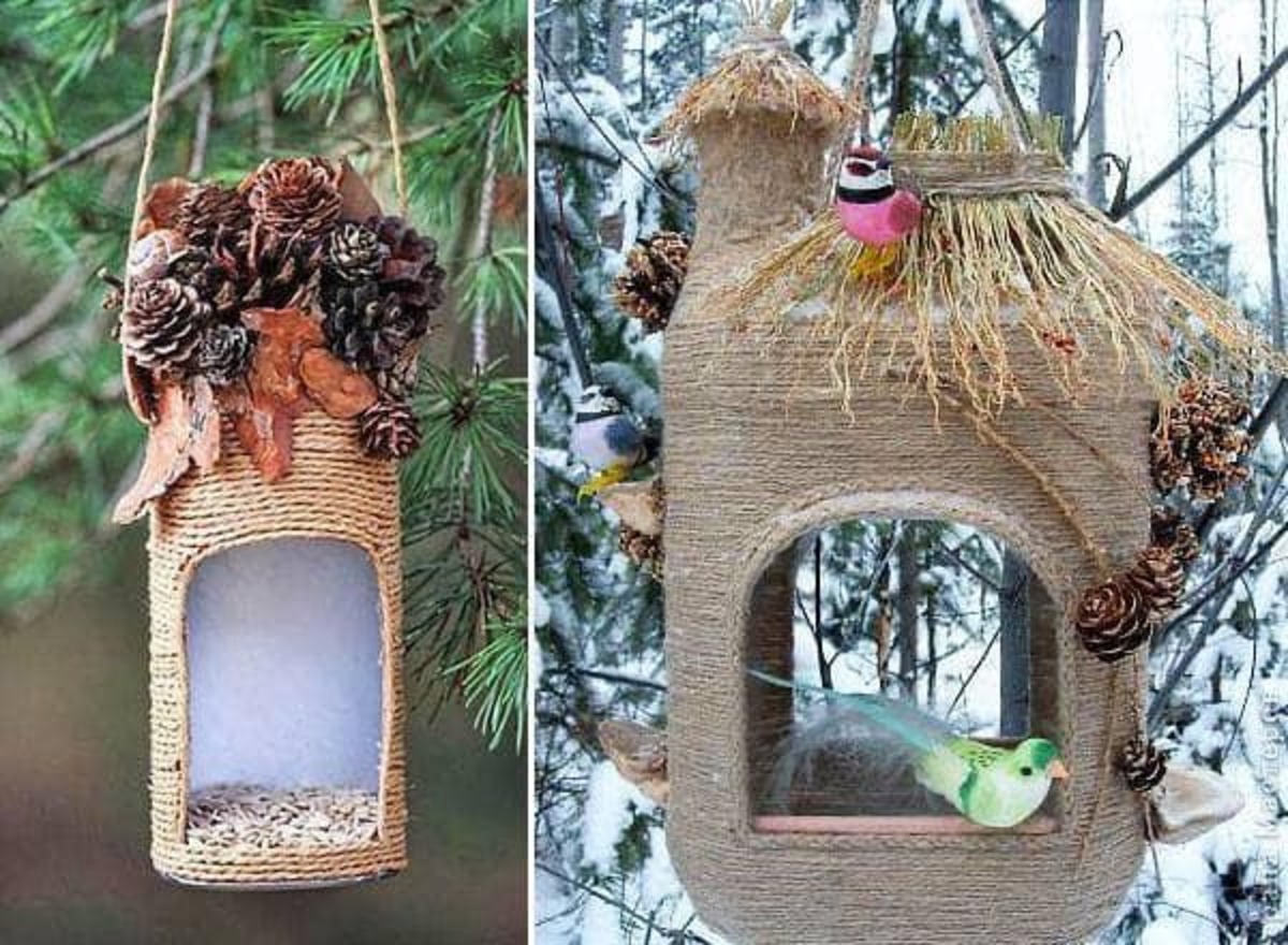 - Кормушка-лампа. Используйте старую лампу или абажур, чтобы создать современный и стильный акцент.