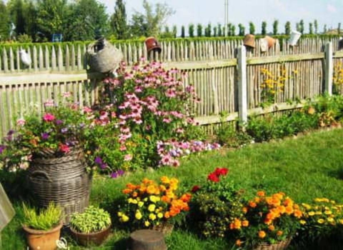 Главной характеристикой стиля кантри является его простота и натуральность, небрежность и яркость красок. В таком саду можно увидеть много различных растений, украшений и декоративных предметов, сочетание которых придает стилю кажущейся беспорядочности, однако каждая деталь имеет свое место и цель.