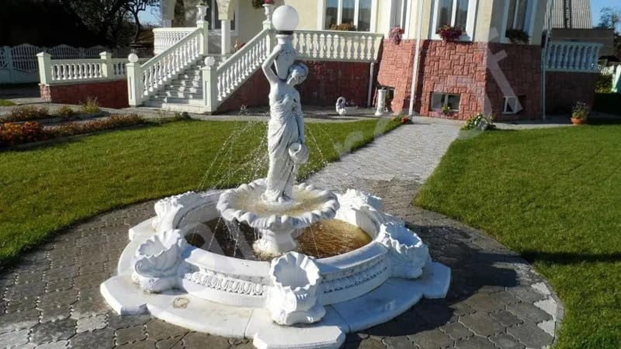 - Класичний фонтан. Якщо ваш сад оформлений у класичному стилі, оберіть фонтан із мармуру чи каменю з витонченими декоративними елементами, такими як ліплення чи фігури.