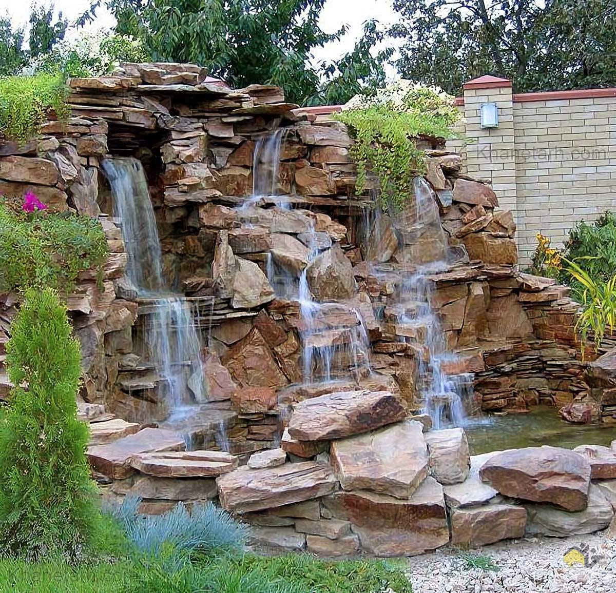 - Природний стиль. Для садів, що відображають природні пейзажі, чудово підійдуть фонтани у вигляді природних джерел або водоспадів, де вода потрапляє в міні-ставок чи декоративний басейн.