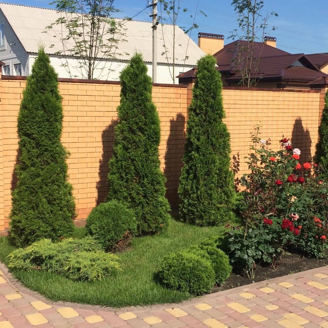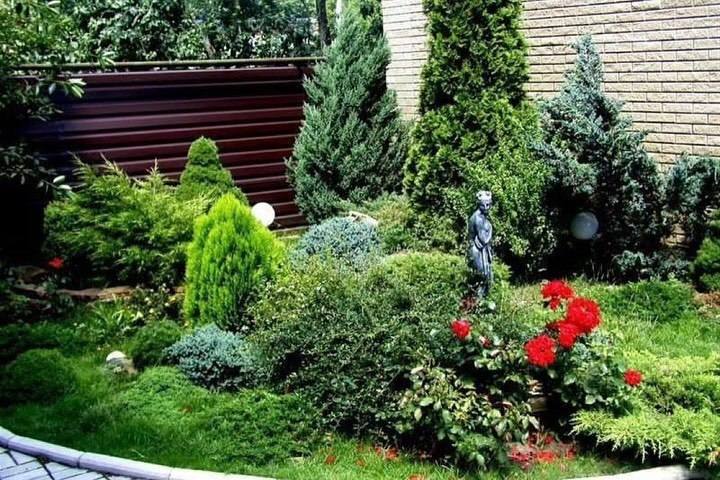 Основой любого эффектного сада является его структурный «скелет», который сохраняет привлекательность независимо от времени года. На большинстве удачных примеров заметно доминирование хвойных и вечнозеленых растений. Это могут быть разнообразные виды туй (колоновидные для вертикальных акцентов, шаровидные для объема), стелющиеся можжевельники, создающие зеленые ковры, или аккуратно стриженный самшит, который формирует плотные бордюры и фигурные элементы. Эти растения являются не только неприхотливыми в уходе, но и обеспечивают постоянную зелень, делая сад живым даже зимой.