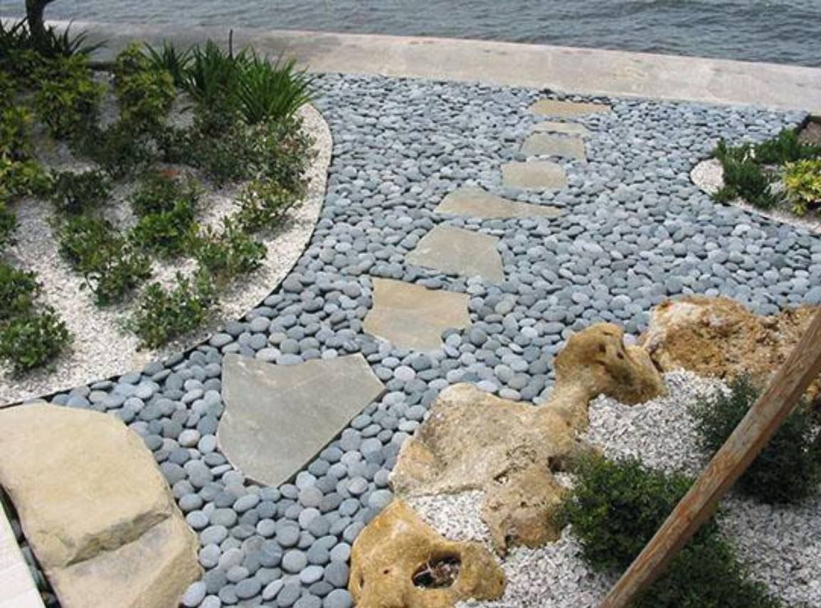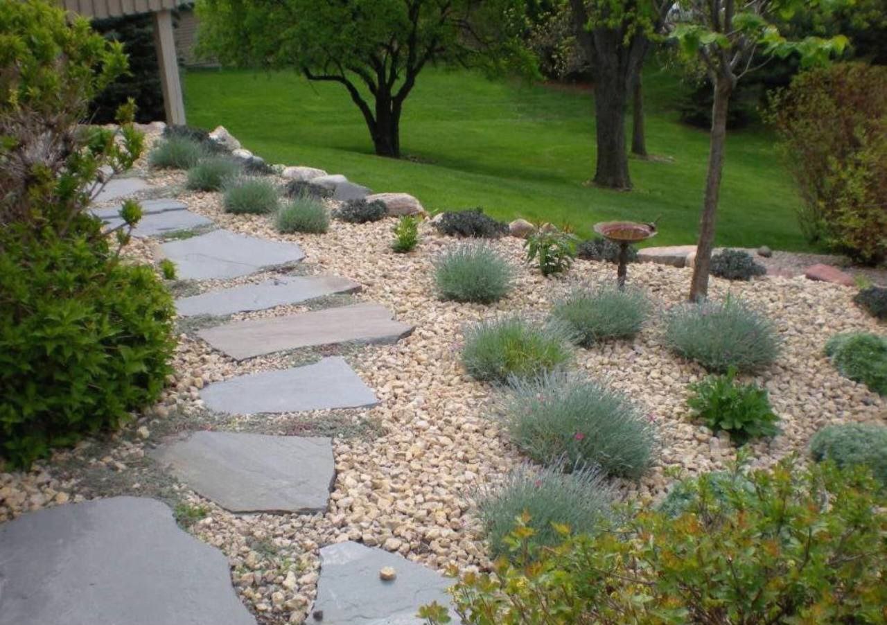 Микс материалов. Комбинируя гравий с каменной плиткой, вы можете создать уникальные интерьерные решения. Использование различных текстур и цветов придаст вашему саду глубину.