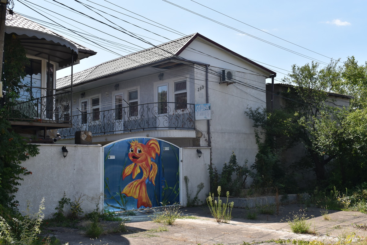 Первый этаж небольшой гостиницы работает как склад, а на двух других размещены номера. Предлагают бесплатную парковку, мангал, шампуры, горячую воду и до моря идти минут пять.