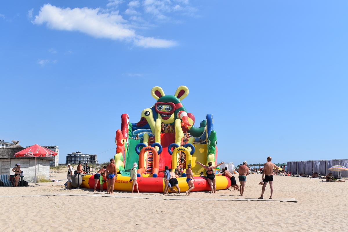 «Людей сейчас уже много, мы открылись в июне, но только после 20 июля народ ушел. В июне у меня было 15 шезлонгов, а теперь — 200. И на данный момент только три свободных. В прошлом году никого не было. В 2022-м — то же самое. Я здесь каждое лето работаю. Как идти по пляжу на запад, то он до узкого места доходит, там блокпост. Но там опасно, в 2022 году обстрел был почти каждый день. Объезд только через границу», – рассказывает местный парень Дмитрий.
