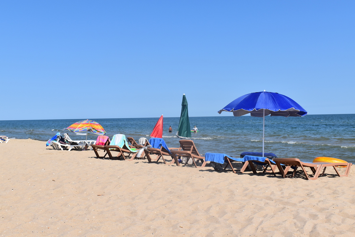 В центре пляжа сдаются в аренду шезлонги – 100 грн за лежак с 8.00 до 20.00.